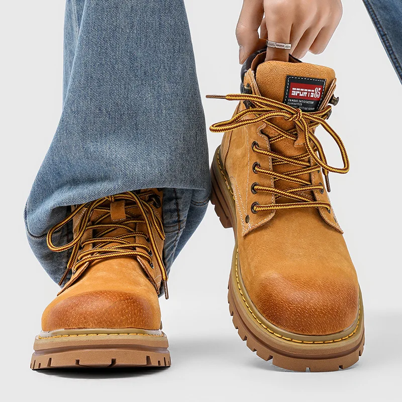 Autumn Winter New Versatile Casual Lace-up Low Tube for Boots Men Women Couples Thick-soled Rubber Outsole Height-increasing